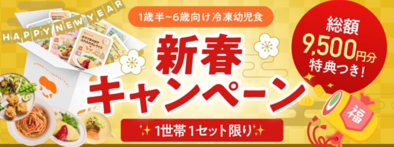 | 冷凍無添加幼児食8食セット (初回のみ) | 2,980円 | 372円 | 無料 | 総額6,000円OFFクーポンもらえる |