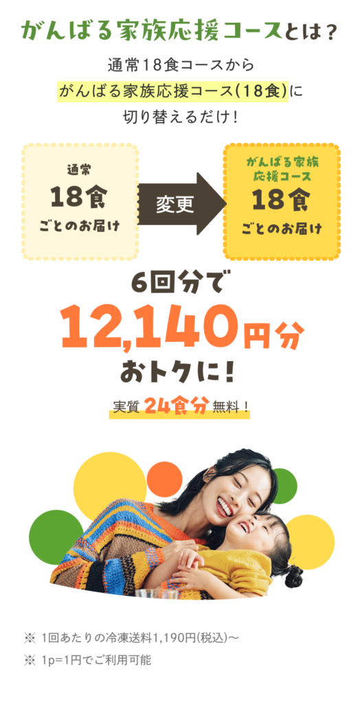 ※がんばる家族応援コースは18食×6回分の注文が必要※
